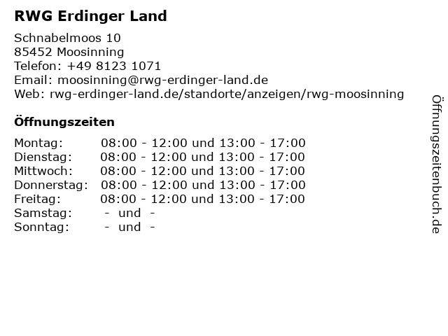 | Öffnungszeiten RWG Erdinger Land in Moosinning anzeigen | |
