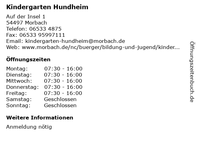 | Öffnungszeiten Kindergarten Hundheim in Morbach anzeigen | |