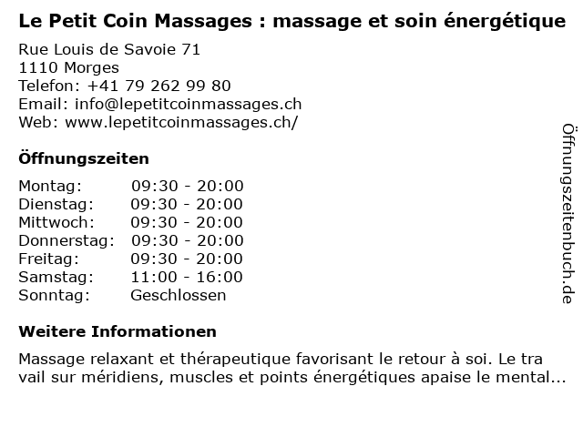 Branchen & Suchbegriffe zu Le Petit Coin Massages : massage et soin énergétique:coin, cours de méditation pleine conscience, drainage lymphatique morges, et, le, mal de dos morges, massage, massage aux huiles essentielles, massage de maternité, massage du dos, massage du dos et nuque morges, massage morges, massage shiatsu, massage traditionnel balinais, massage traditionnel thaïlandais, massages, massages enfants morges, massages morges, massages relaxants morges, massages à l'huile morges, petit, réflexologie plantaire morges, shiatsu morges, soin, soins énergétiques, énergétique |