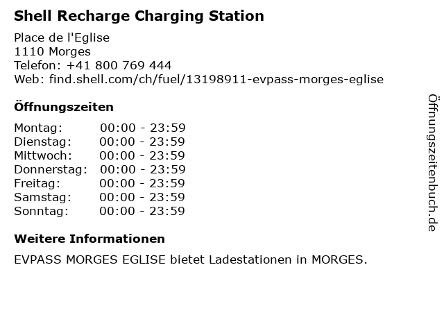 Shell Recharge Charging Station in Morges: Telefonnummer, Öffnungszeiten und Adresse