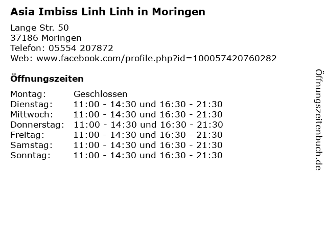 Branchen & Suchbegriffe zu Asia Imbiss Linh Linh in Moringen:asia, essen, gastronomie, getränke, hauptgerichte, imbiss, linh, moringen, restaurant, salate, vorspeisen |