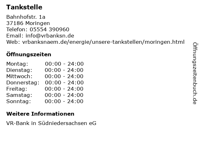 | Öffnungszeiten Tankstelle in Moringen anzeigen | |