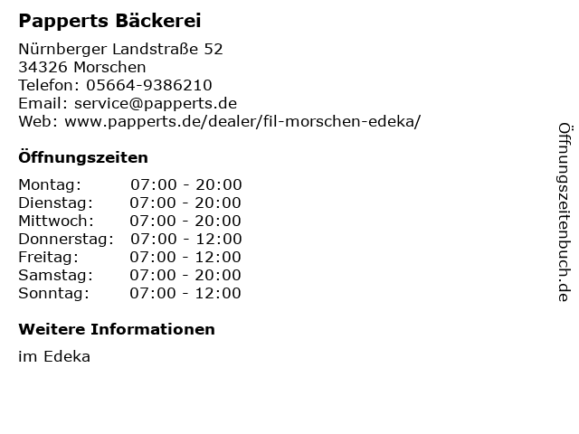 | Öffnungszeiten Papperts Bäckerei in Morschen anzeigen | |