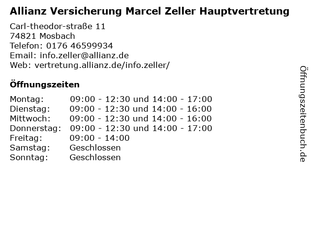 1 Allianz Versicherung Danijel Mihajlovic Hauptvertretung (Entfernung: 0,00 km) Carl-theodor-straße 11, 74821 Mosbach 2 Allianz Agentur Mosbach - Hauptvertretung Horst Frei (Entfernung: 0,26 km) Gartenweg 3, 74821 Mosbach 4 Allianz Versicherung Timo Greiner Hauptvertretung (Entfernung: 7,58 km) Schloßstraße 12/1, 74831 Gundelsheim 5 Jens Richter Hauptvertretung der Allianz (Entfernung: 11,00 km) Mosbacher str. 28, 74858 Aglasterhausen 6 Allianz Versicherung Jens Richter Hauptvertretung (Entfernung: 11,01 km) Mosbacher Straße 28, 74858 Aglasterhausen |