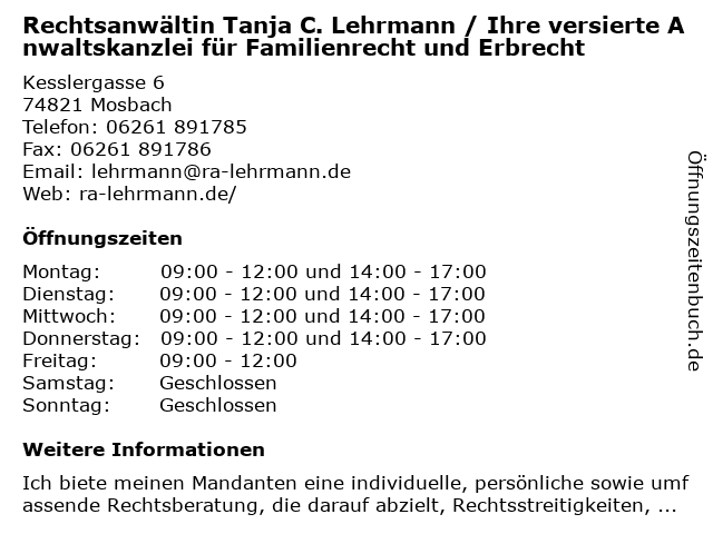 Branchen & Suchbegriffe zu Rechtsanwältin Tanja C. Lehrmann / Ihre versierte Anwaltskanzlei für Familienrecht und Erbrecht:anwaltskanzlei, c., erbrecht, familienrecht, ihre, lehrmann, rechtsanwältin, tanja, versierte |