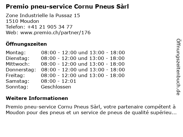 Branchen & Suchbegriffe zu Premio pneu-service Cornu Pneus Sàrl:acheter pneus d'hiver/été/toutes saisons, changement de roues, concessionnaire de pneus, configurateur de jantes, cornu, géométrie de direction, jantes alu, pneu, pneus, pneus avec jantes alu, premio, roues complètes, service, service d'amortisseurs, service de pneus, stockage, stockage de roues, sàrl |