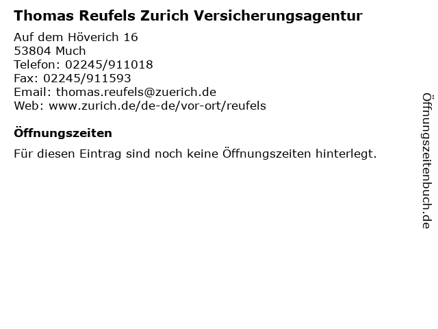 | Thomas Reufels Zurich Versicherungsagentur anrufen | |