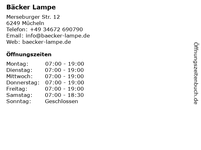 Öffnungszeiten Bäcker Lampe in Mücheln anzeigen