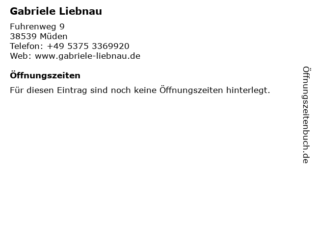 | Öffnungszeiten Gabriele Liebnau in Müden anzeigen | |