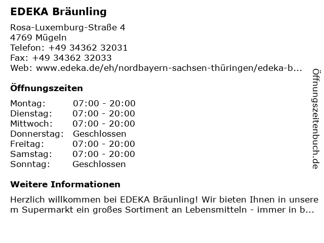 | Adresse EDEKA Bräunling in Mügeln anzeigen |