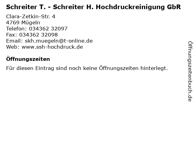 | Schreiter T. - Schreiter H. Hochdruckreinigung GbR anrufen | |