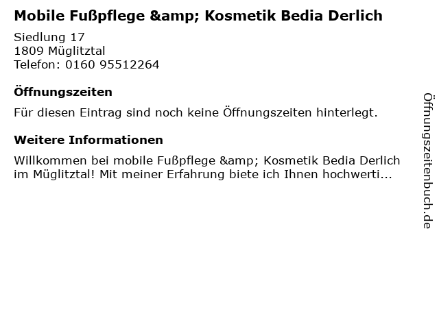 | Mobile Fußpflege & Kosmetik Bedia Derlich anrufen | |