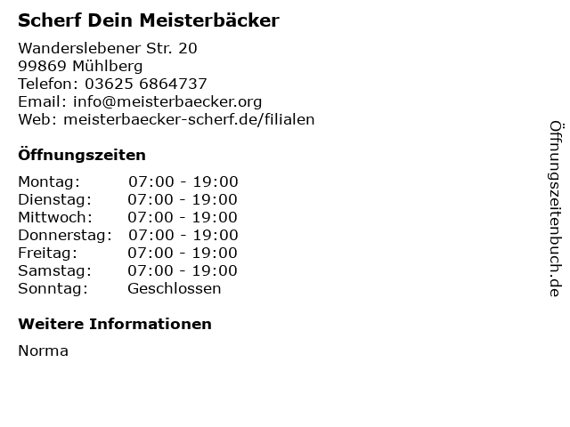 | Öffnungszeiten Scherf Dein Meisterbäcker in Mühlberg anzeigen | |