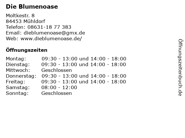 | Öffnungszeiten Die Blumenoase in Mühldorf anzeigen | |