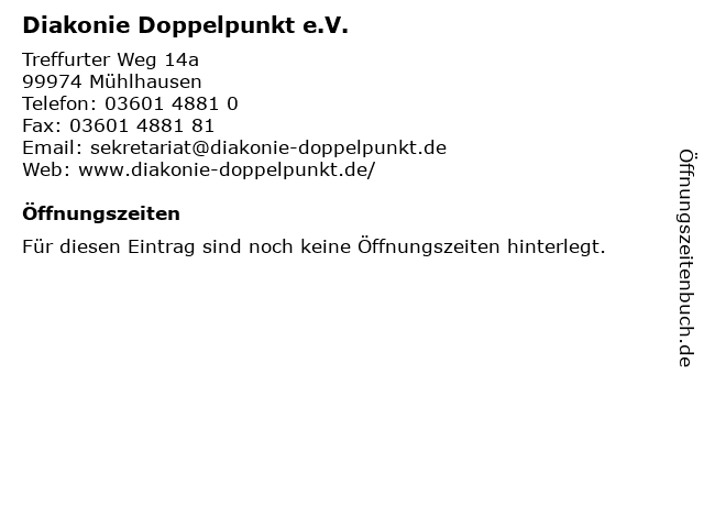 | Öffnungszeiten Diakonie Doppelpunkt e.V. in Mühlhausen anzeigen | |