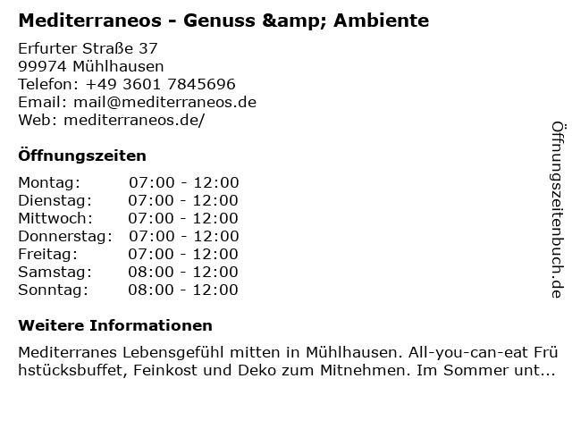 Branchen & Suchbegriffe zu Mediterraneos - Genuss & Ambiente:all-you-can-eat frühstücksbuffet, ambiente, biergarten in mühlhausen, familienfeiern, firmenfeier, geburtstagsfeier, genuss, mediterranen spezialitäten, mediterraneos, weihnachtsfeier |