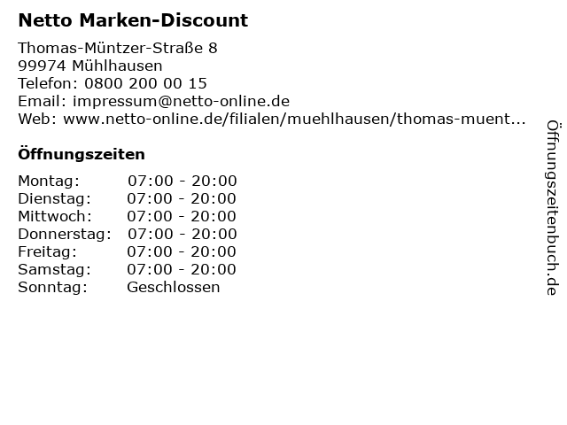 | Öffnungszeiten Netto Marken-Discount in Mühlhausen anzeigen | |