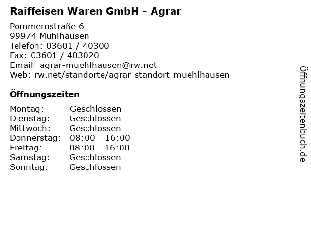 5 Raiffeisen-Warenzentrale Kurhessen-Thüringen GmbH RWZ Lagerhaus Großengottern (Entfernung: 11,60 km) Mülverstedter Str. , 99991 Großengottern 6 |