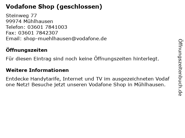 Branchen & Suchbegriffe zu Vodafone Shop (geschlossen):geschlossen, geschäft für handyzubehör, internetanbieter, kabelanschlüsse und satellitenschüsseln, shop, telefonanbieter, vodafone, wlan |