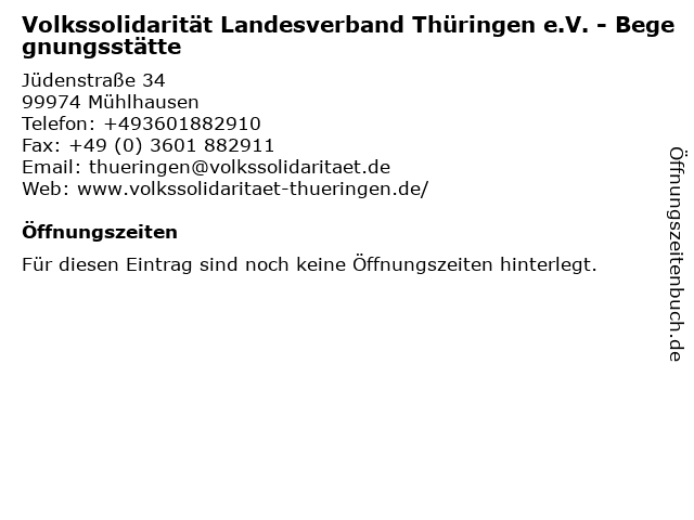 | Volkssolidarität Landesverband Thüringen e.V. - Begegnungsstätte anrufen | |