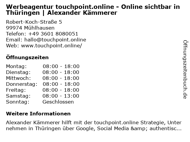 | Branchen & Suchbegriffe zu Werbeagentur touchpoint.online - Online sichtbar in Thüringen | Alexander Kämmerer:alexander, arbeitgebermarketing, content-erstellung (bilder-story-reel), content-produktion, fachkräftegewinnung, foto & video content, google business profil optimierung, kämmerer, local seo, local seo thüringen, lokale suchmaschinenoptimierung, lokales online marketing, online, online sichtbarkeit, personalmarketing, sichtbar, sichtbarkeit mit system, social employer branding, social media kampagnen, social media marketing, social media recruiting, social media strategie, suchmaschinenoptimierung, thüringen, touchpoint.online, werbeagentur |