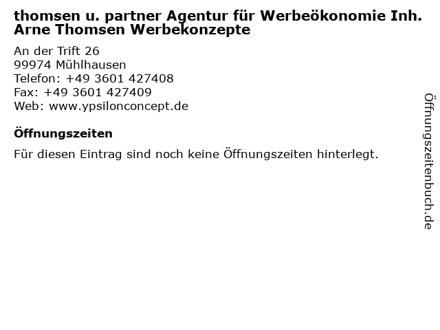 | thomsen u. partner Agentur für Werbeökonomie Inh. Arne Thomsen Werbekonzepte anrufen | |