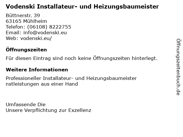 | Vodenski Installateur- und Heizungsbaumeister anrufen | |