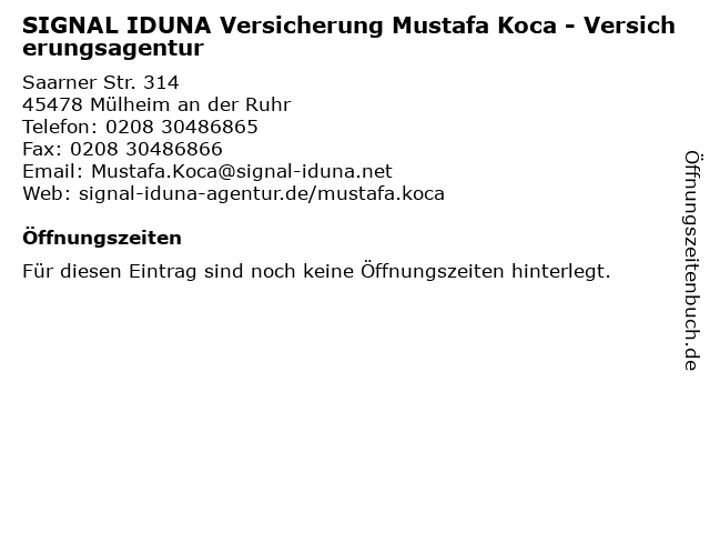 | SIGNAL IDUNA Versicherung Mustafa Koca - Versicherungsagentur anrufen | |