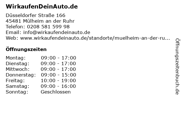 WirkaufenDeinAuto.de in Mülheim an der Ruhr: Telefonnummer, Öffnungszeiten und Adresse