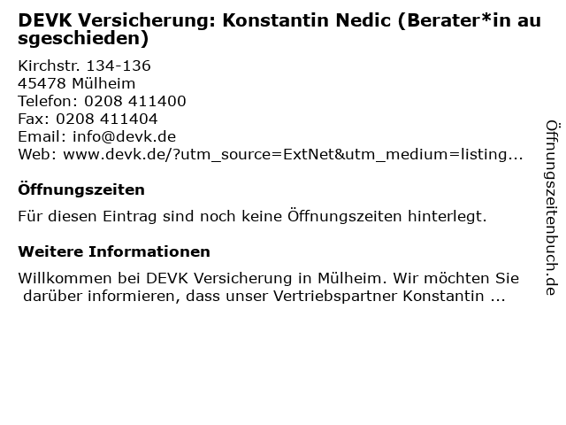 | DEVK Versicherung: Konstantin Nedic (Berater*in ausgeschieden) anrufen | |