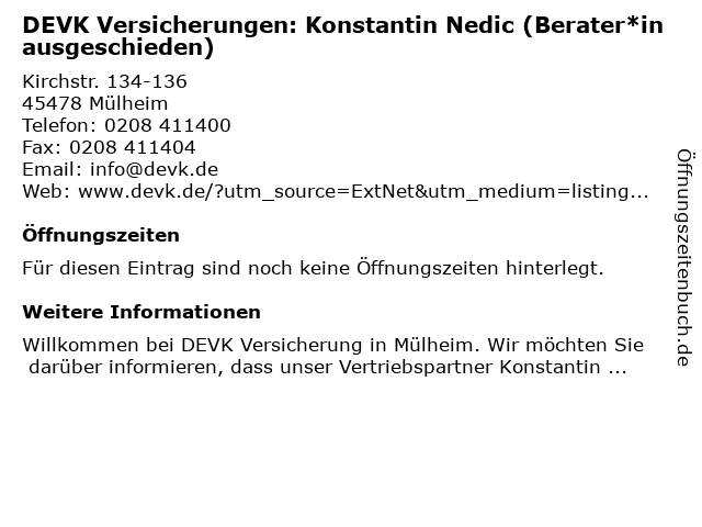 | DEVK Versicherungen: Konstantin Nedic (Berater*in ausgeschieden) anrufen | |