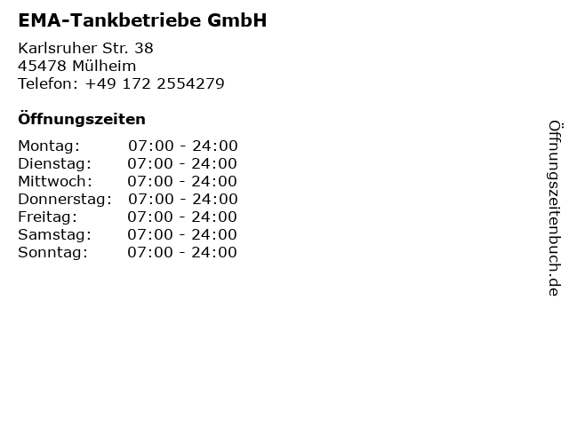 | Öffnungszeiten EMA-Tankbetriebe GmbH in Mülheim anzeigen | |