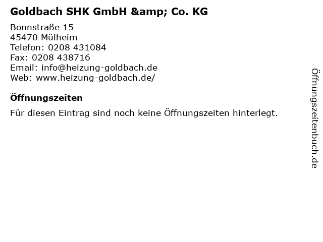 | Öffnungszeiten Goldbach SHK GmbH & Co. KG in Mülheim anzeigen | |