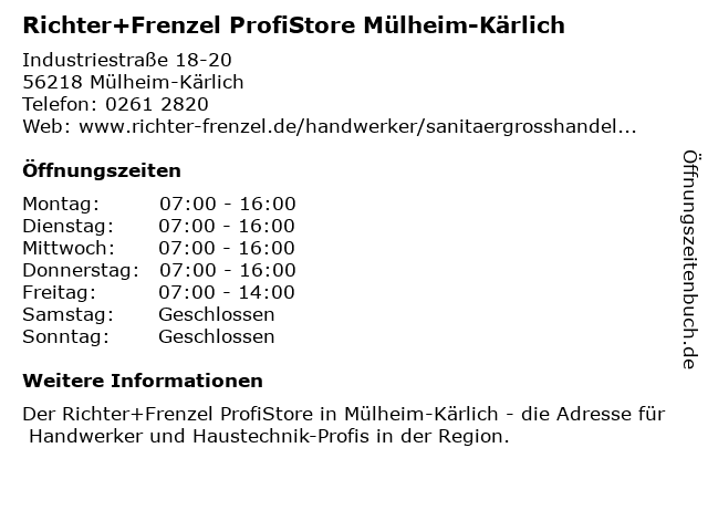 3 Richter+Frenzel BäderStore Mülheim-Kärlich (Entfernung: 0,10 km) Industriestraße 18-20, 56218 Mülheim-Kärlich 6 |