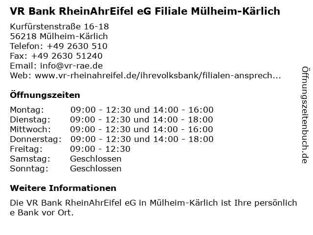 Branchen & Suchbegriffe zu VR Bank RheinAhrEifel eG Filiale Mülheim-Kärlich:bank, beratung, eg, geldautomat, genossenschaft, immobilienagentur, kredit, kärlich, rheinahreifel, versicherung, vr |