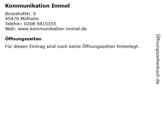 | Öffnungszeiten Kommunikation Immel in Mülheim anzeigen | |