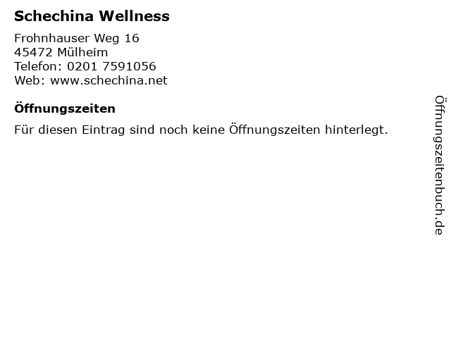 | Öffnungszeiten Schechina Wellness in Mülheim anzeigen | |