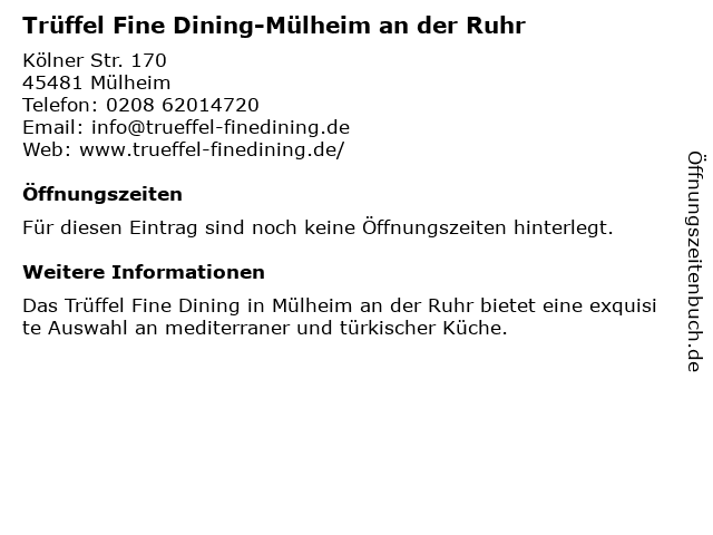| Trüffel Fine Dining-Mülheim an der Ruhr anrufen | |