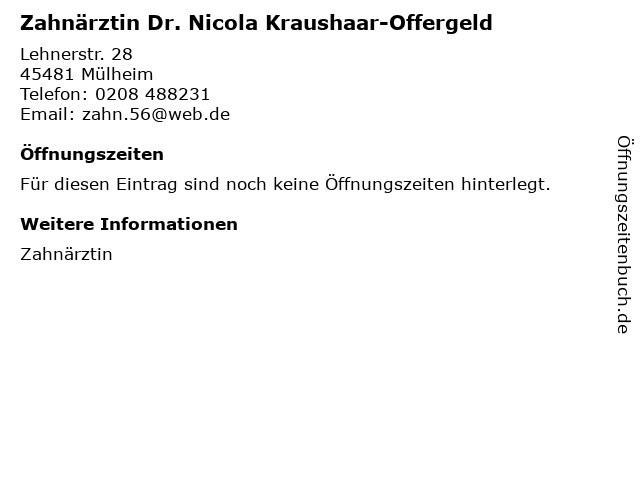 | Zahnärztin Dr. Nicola Kraushaar-Offergeld anrufen | |