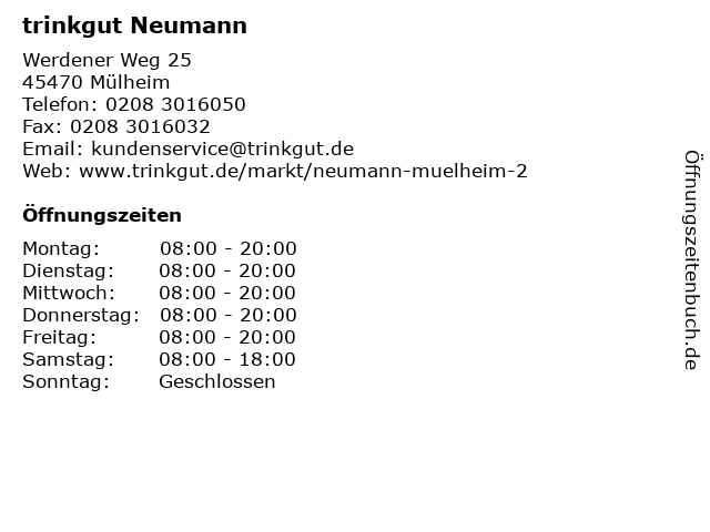 | Öffnungszeiten trinkgut Neumann in Mülheim anzeigen | |