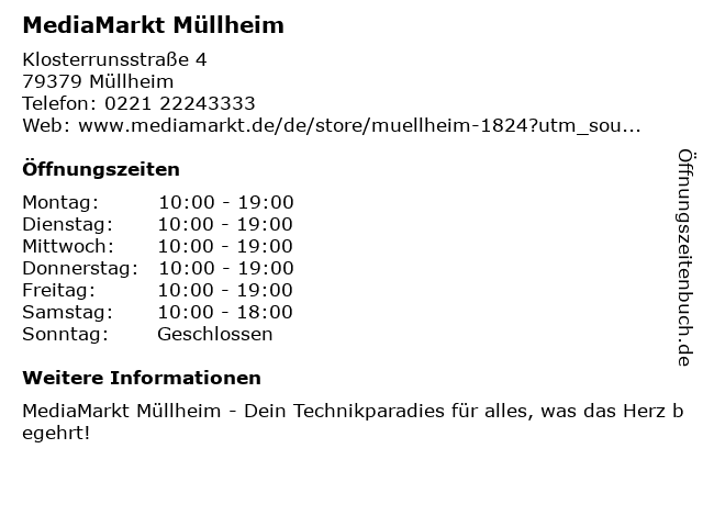 | Öffnungszeiten MediaMarkt Müllheim in Müllheim anzeigen | |