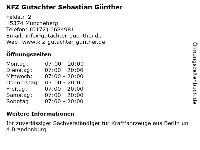 2 KFZ-Sachverständigenbüro Sebastian Schönert (Entfernung: 1,66 km) Münchehofer Weg 38, 15374 Müncheberg 6 HUK-COBURG Versicherung Sebastian Weidauer in Fürstenwalde (Entfernung: 15,47 km) Karl-liebknecht-str. 67, 15517 Fürstenwalde |