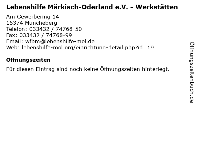 | Lebenshilfe Märkisch-Oderland e.V. - Werkstätten anrufen | |