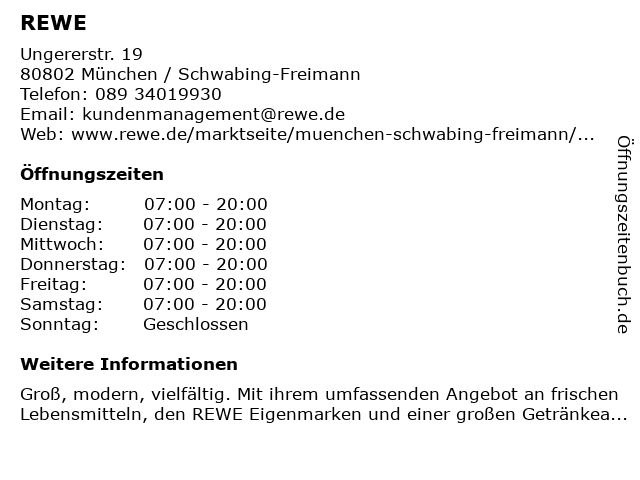 Hinweis: Groß, modern, vielfältig. Mit ihrem umfassenden Angebot an frischen Lebensmitteln, den REWE Eigenmarken und einer großen Getränkeauswahl, bieten REWE Supermärkte alles was Sie brauchen an einem Ort.
