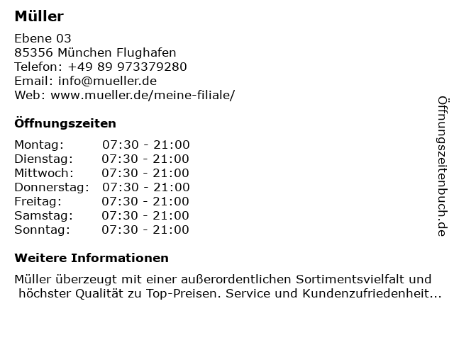 Öffnungszeiten Müller in München Flughafen anzeigen | |