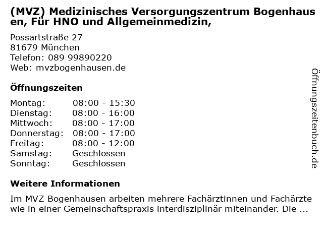 Branchen & Suchbegriffe zu (MVZ) Medizinisches Versorgungszentrum Bogenhausen, Für HNO und Allgemeinmedizin,:allgemeinmedizin, allgemeinärzte, bogenhausen, hals-nasen-ohrenheilkunde, hausarztpraxis, hno, kliniken, medizinisches, mvz, naturheilkunde, versorgungszentrum |