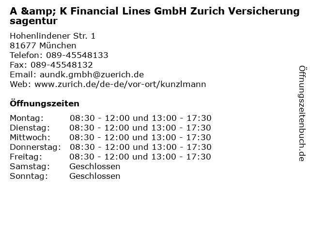 Branchen & Suchbegriffe zu A & K Financial Lines GmbH Zurich Versicherungsagentur:financial, lines, police, risiko, schaden, schutz, versicherung, versicherungsagentur, zurich |