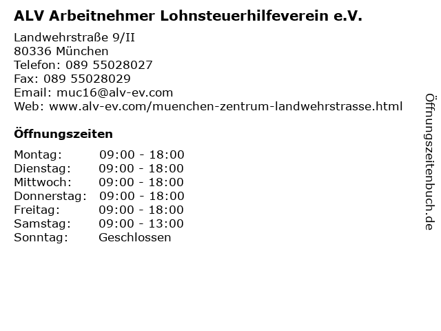 1 ALV Arbeitnehmer Lohnsteuerhilfeverein e.V. (Entfernung: 1,50 km) Schwanthalerstraße 133, 80339 München 2 5 Lohnsteuerberatungsverbund e. V. -Lohnsteuerhilfeverein- Beratungsstelle München (Entfernung: 0,18 km) Sonnenstraße 6, 80331 München 6 Smartax Deutschland Lohnsteuerhilfeverein e.V. (Entfernung: 0,23 km) Pettenkoferstr. 4, 80336 München |