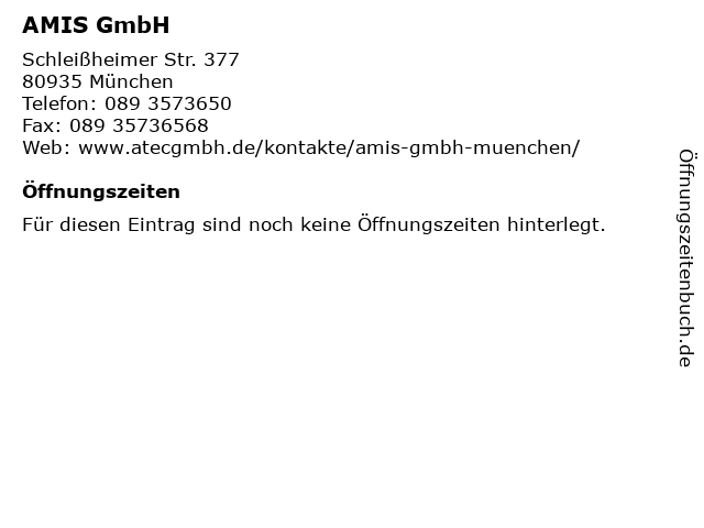| Öffnungszeiten AMIS GmbH in München anzeigen | |