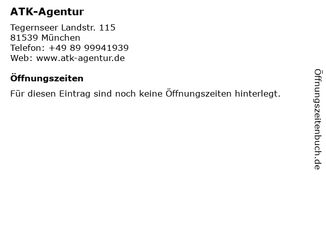 | Öffnungszeiten ATK-Agentur in München anzeigen | |